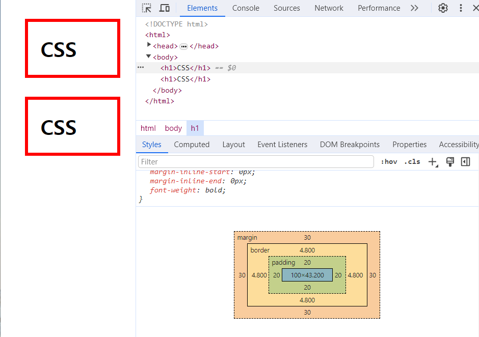 CSS box model : 각각의 HTML 태그를 일종의 '박스'로 취급해, 그 부피감을 결정하는 것.